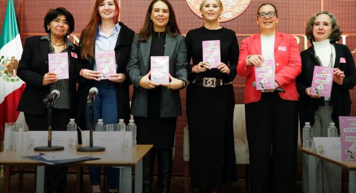 En el contexto de los 16 días de activismo contra la violencia de género, en el Senado de la República se llevó a cabo la presentación del libro “Tiempo de mujeres”, que contiene la colaboración de nueve coautoras que reflexionan sobre su realidad en México, su inclusión laboral, la masculinización en el ejercicio del poder, su participación política, así como la llegada de la primera presidenta de nuestro país.