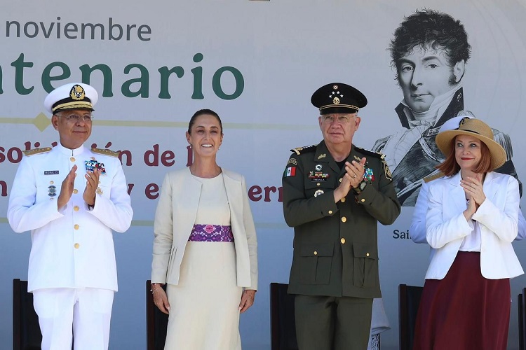 Asimismo, reconoció la valentía y vocación de las Fuerzas Armadas de México que construyen paz todos los días y están presentes desde la inauguración de un tren, hasta en casos de emergencia para tender la mano a las y los mexicanos, como ocurrió recientemente con las inundaciones en los estados de Veracruz, Puebla, Hidalgo, San Luis Potosí y Querétaro.