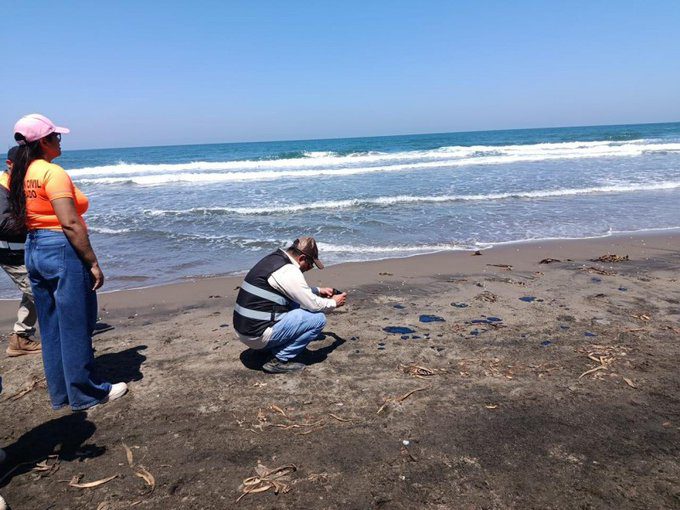 Se observó la presencia de material oleoso con características similares al hidrocarburo y manchas dispersas sobre la arena de entre 3 y 30 centímetros, aproximadamente. Además, se registró su presencia a lo largo de 3 kilómetros, de acuerdo con las autoridades locales.