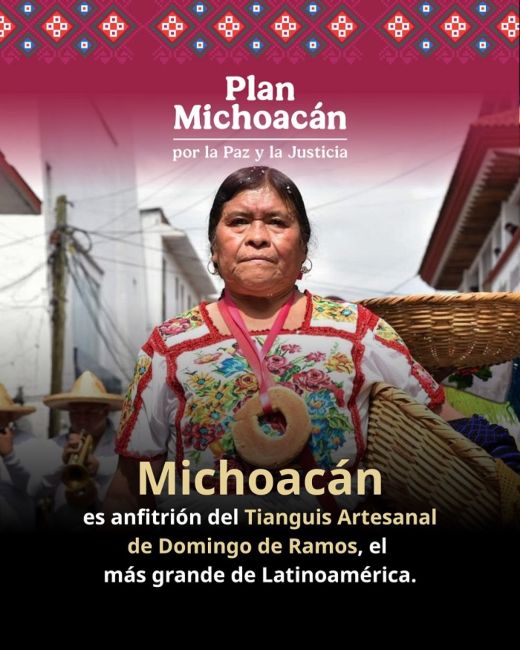 URUAPAN, MICHOACÁN.- El Tianguis de Domingo de Ramos posiciona a Michoacán como un referente del turismo cultural en América Latina, al reunir la riqueza de sus 16 ramas artesanales y consolidarse como un atractivo de alto valor para visitantes nacionales e internacionales