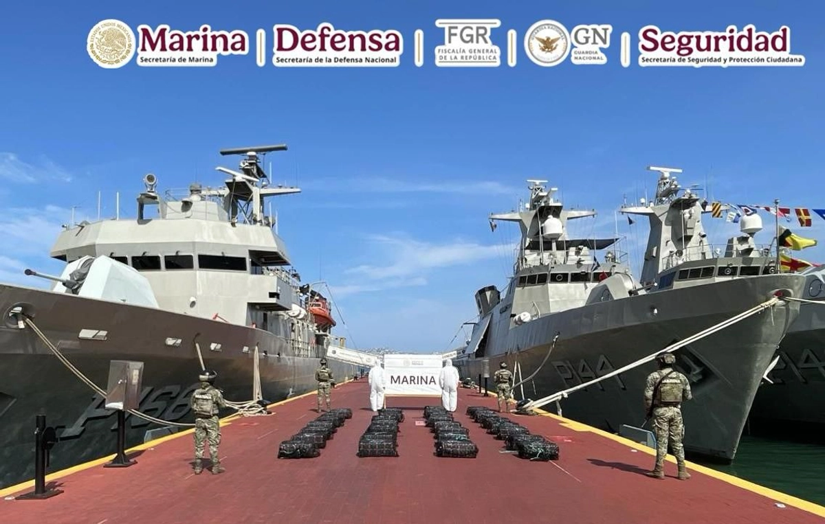 El aseguramiento de los 900 kilogramos de cocaína se realizó en coordinación con la Fiscalía General de la República (FGR), Ejército, Guardia Nacional y Secretaría de Seguridad y Protección Ciudadana (SSPC), y se suma a las más de 46 toneladas de cocaína incautadas en la mar, en lo que va de la presente administración.