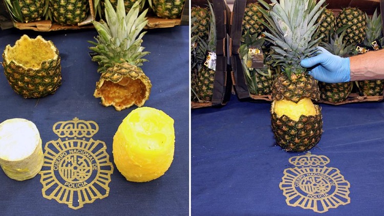 MADRID, 26 de agosto (AlMomentoMx).- Siete personas han sido detenidas en Madrid y Barcelona por parte de elementos de la Policía Nacional de España en una operación en la que se han incautado 67 kilos de cocaína en el interior de piñas, procedentes de Costa Rica.