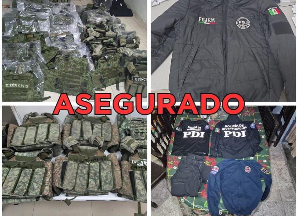 ⇒ La Fiscalía General de Justicia del Estado de México (FGJEM) dio a conocer que en ese lugar, aparentemente, armaban paquetes con uniformes y equipo táctico que luego enviaban a otros estados, entre ellos Jalisco y Oaxaca, a veces por paquetería, a una organización delictiva.