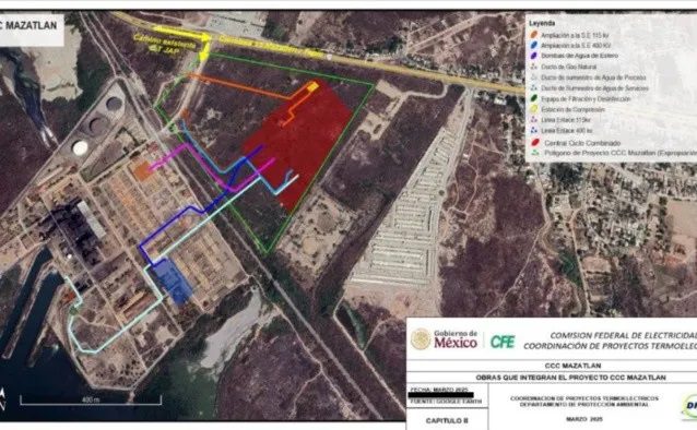 La central se construirá al sureste del centro de Mazatlán, en el Estero La Sirena, en una zona urbanizable clasificada para uso industrial logístico, lo que minimiza los impactos ambientales al aprovechar terrenos ya intervenidos.