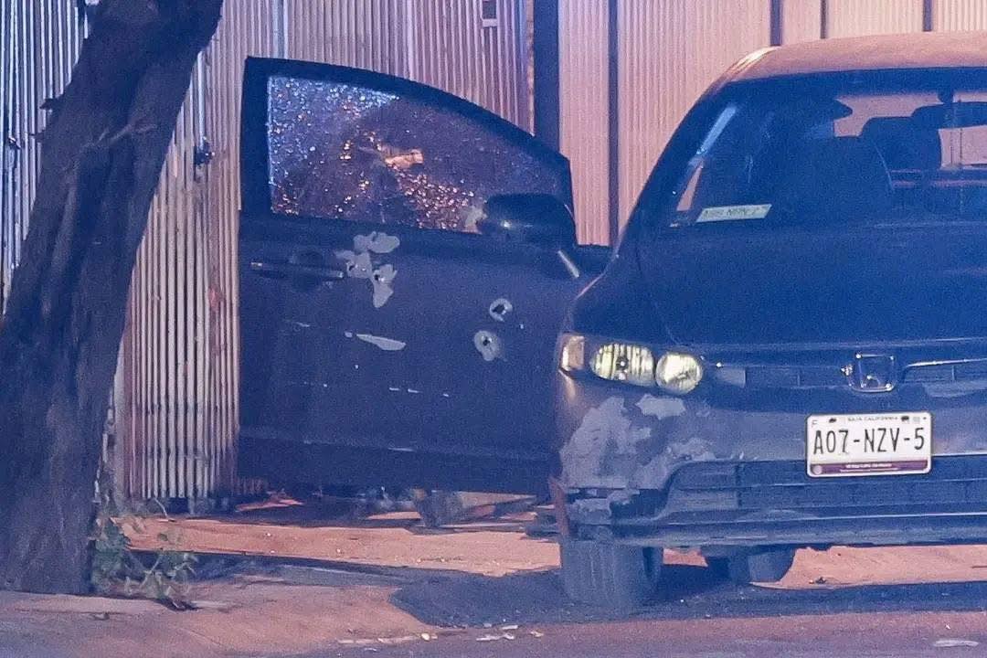⇒ La escena quedó bajo resguardo de la Fiscalía General de Baja California, que inició la investigación correspondiente. Peritos localizaron más de diez casquillos percutidos alrededor del vehículo.
