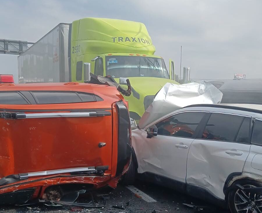 Presuntamente, un tráiler embistió a dos unidades de transporte público de pasajeros y siete autos compactos; dos de ellos quedaron volcados y tres prácticamente destrozados. En el lugar, una persona resultó muerta ocupante de uno de los autos compactos, un Honda color blanco.