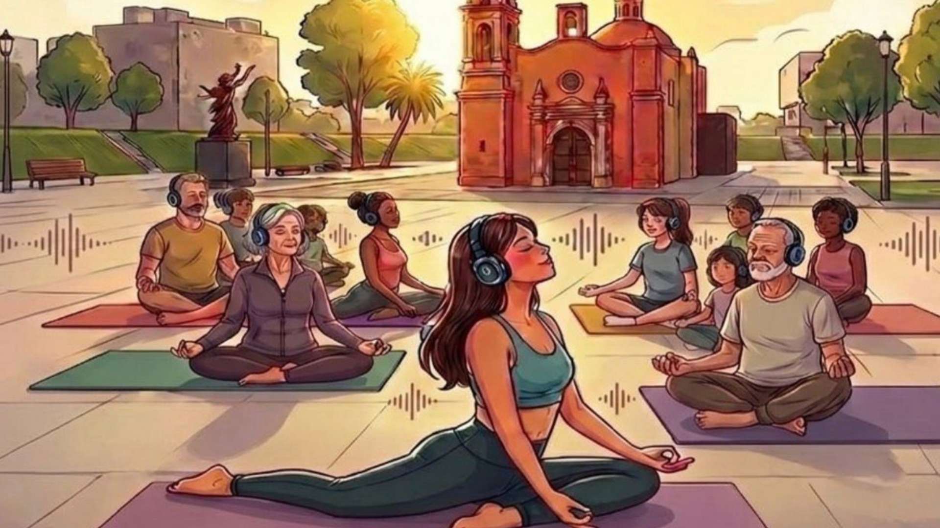 Para enriquecer la experiencia sensorial, se proporcionarán audífonos inalámbricos a los asistentes, permitiéndoles sumergirse en una ambientación sonora especialmente diseñada para la relajación e introspección. Esta tecnología asegura que cada participante pueda aislarse del ruido urbano y concentrarse plenamente en su bienestar durante la práctica dirigida.