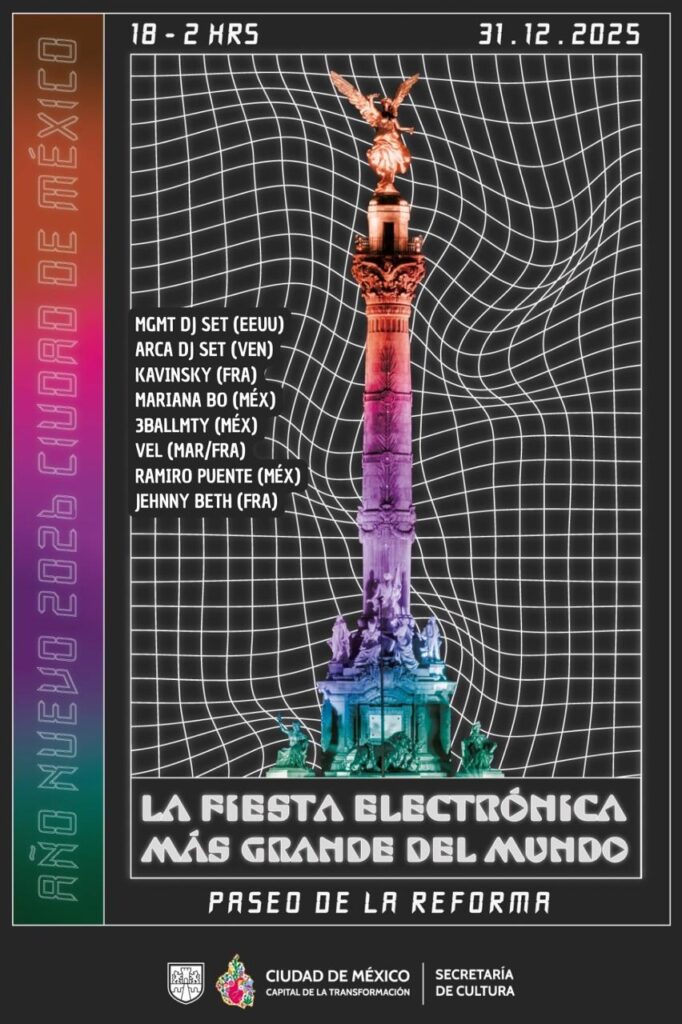 Ciudad de México.- El Gobierno de la Ciudad de México, a través de la Secretaría de Cultura, ha anunciado un evento sin precedentes para cerrar el año. Bajo el concepto de “La fiesta electrónica más grande del mundo”, la emblemática Avenida Paseo de la Reforma se convertirá en un gigantesco escenario al aire libre el próximo miércoles 31 de diciembre. Con un horario de 18:00 a 02:00 horas y entrada libre, la capital se prepara para recibir el 2026 en una celebración colectiva que apuesta por la apropiación del espacio público y el acceso universal a la cultura.