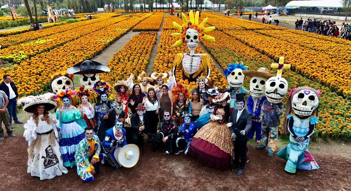 Ciudad de México.- En el corazón de Xochimilco, la Jefa de Gobierno de la Ciudad de México, Clara Brugada Molina, encabezó la presentación del Sendero de las Almas en el paraje San Sebastián del pueblo de San Luis Tlaxialtemalco, donde celebró la producción récord de 6.3 millones de plantas de cempasúchil alcanzada por las y los floricultores locales. La mandataria destacó que esta flor no solo adorna las ofrendas del Día de Muertos, sino que simboliza resistencia, tradición e identidad para la capital.