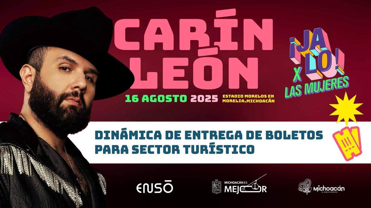 MORELIA.— El concierto de Carín León en el Festival Jalo x las Mujeres, el próximo 16 de agosto, dejará una derrama económica superior a los 13 millones de pesos entre hospedaje, consumo de alimentos y transporte para la capital michoacana, señaló el gobernador Alfredo Ramírez Bedolla.