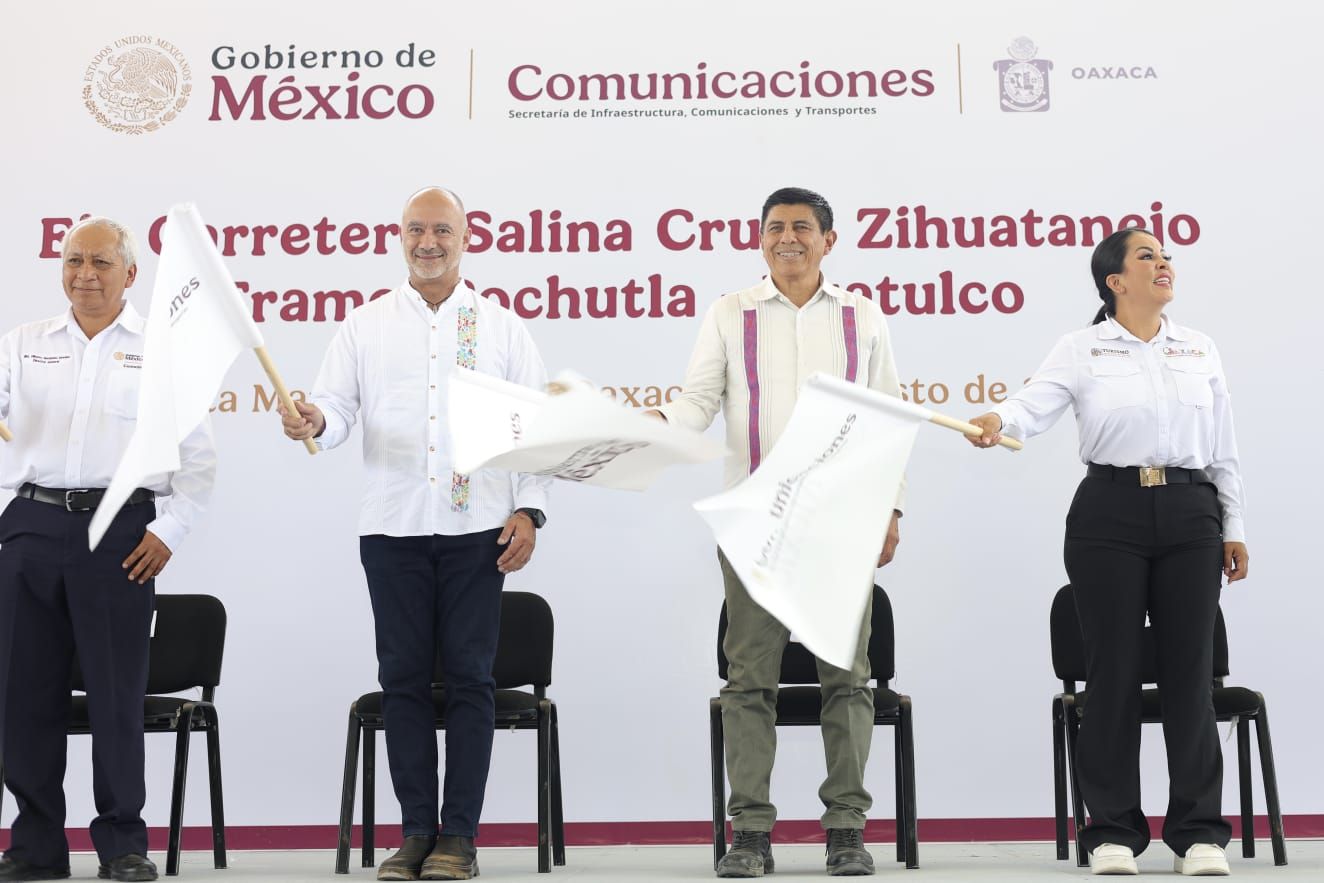 En Santa María Huatulco, encabezamos el banderazo de inicio de obra del eje carretero Salina Cruz – Zihuatanejo, tramo Pochutla – Huatulco, con el secretario de… pic.twitter.com/ZYSD8Dwy6k