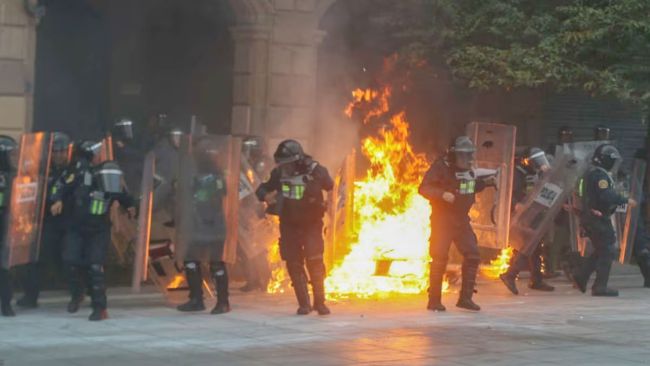 Detalló que principalmente se reportó el uso de bombas molotov, así como cohetones, piedras y aerosol para provocar fuego contra los elementos de seguridad.