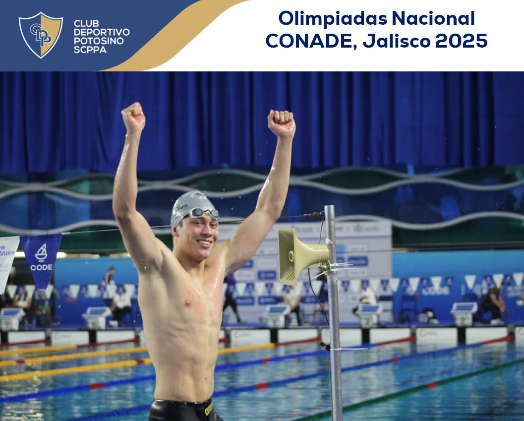 Con un tiempo de 29:23 en los 50 metros pecho, el joven de tan solo 17 años consiguió posicionarse como el primer lugar en la competencia de la CONADE 2025, triunfo que le reconoció el TEC de San Luis Potosí, así como el Club Deportivo Potosino, donde entrena desde los 4 años.