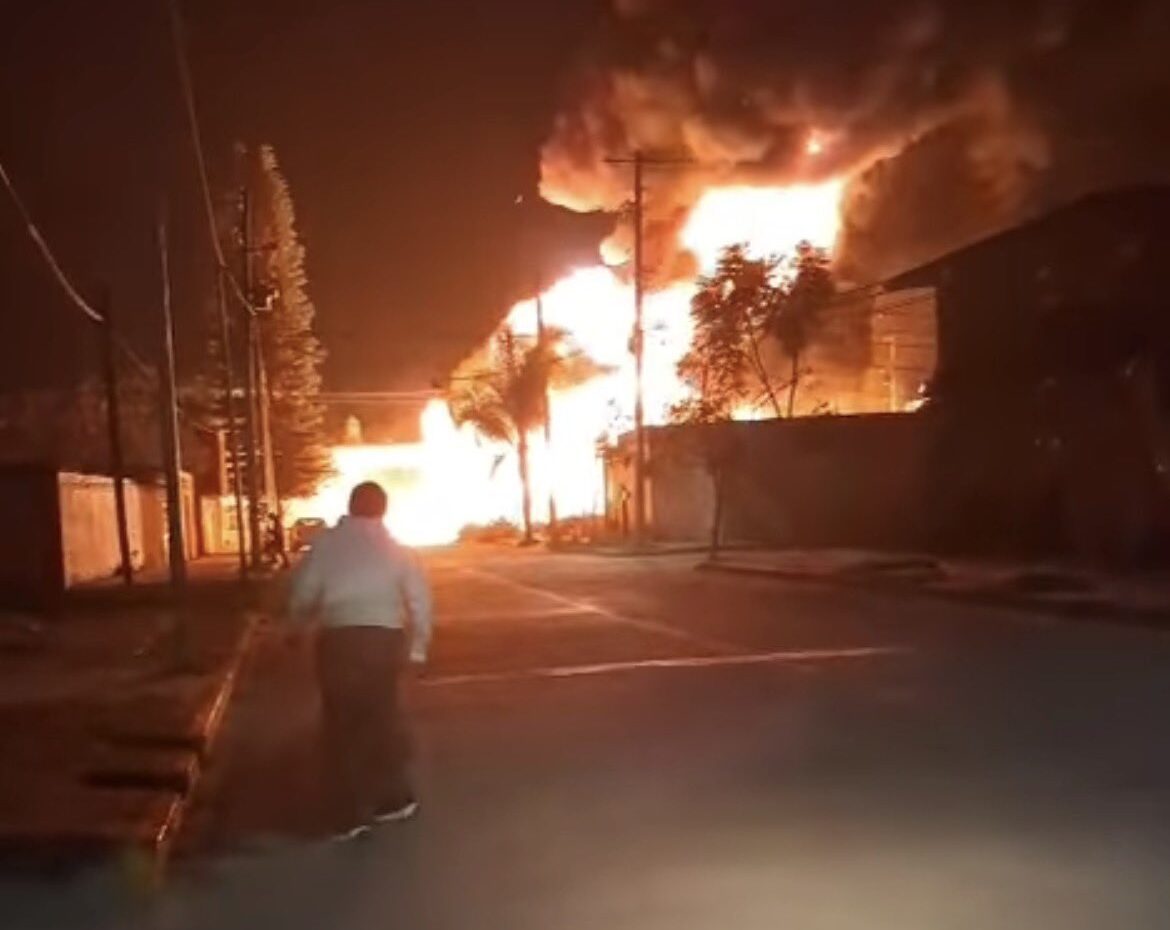 VILLAGRÁN.— La noche de este jueves 8 de enero se registró una explosión e incendio en un depósito clandestino de combustible en el municipio de Villagrán, Guanajuato, lo que generó pánico entre los habitantes y la evacuación de familias de la zona. Las llamas alcanzaron más de 40 metros de altura.