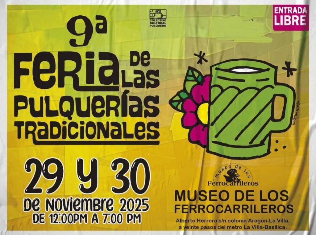 Ciudad de México.- El Museo de los Ferrocarrileros, recinto cultural de la Secretaría de Cultura capitalina, abrirá sus puertas el sábado 29 y domingo 30 de noviembre para recibir la 9a Feria de las Pulquerías Tradicionales, un encuentro que reúne historia, sabor y tradición en un ambiente completamente festivo. Las actividades serán gratuitas, con horario de 10 a 19 horas, y buscan fortalecer el vínculo entre la cultura del pulque y las nuevas generaciones.
