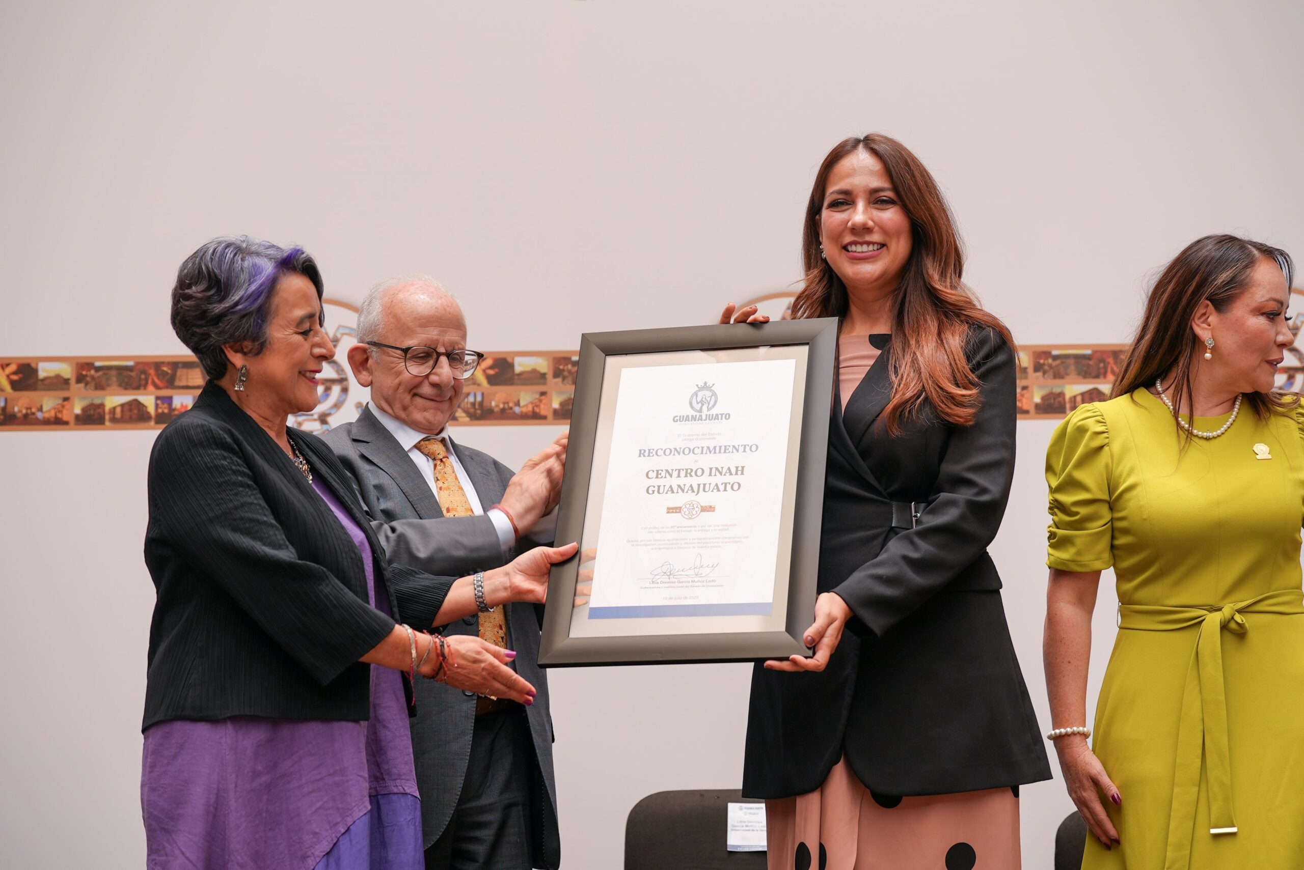 Durante su intervención, Libia Dennise García reconoció la invaluable labor que ha realizado el INAH desde su llegada al estado en 1970, subrayando que su presencia ha sido fundamental para el rescate, la preservación y la divulgación del legado histórico, arqueológico y paleontológico de Guanajuato.