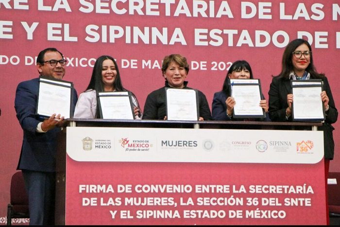 Granillo Velazco abundó que en las escuelas del país se construye el presente y el futuro de las niñas, adolescentes y jóvenes, por lo que la suscripción del convenio es una forma de decirles con claridad a todas las mujeres mexiquenses que no están solas, que cuentan con sus instituciones y con la fuerza solidaria del magisterio, que está en la Sección 36 del SNTE.