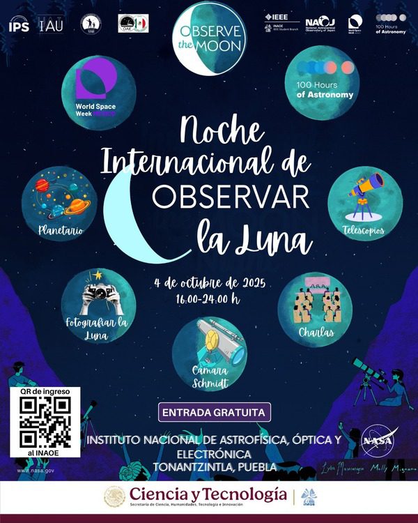 El Instituto Nacional de Astrofísica, Óptica y Electrónica, INAOE, de Puebla ha anunciado una serie de actividades para celebrar la Semana Internacional del Espacio, este 4 y 5 de octubre.