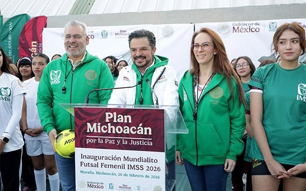 “En algunas Mañaneras vamos a hacer enlaces para los distintos mundialitos que ya se están haciendo del Mundial de Fútbol. El día de hoy vamos a Michoacán, en un enlace con el gobernador, Alfredo Ramírez Bedolla y con Zoé Robledo (director general del IMSS), y está ahí Gabriela Cuevas (coordinadora de los trabajos del Gobierno Federal para el Mundial 2026). Y es el torneo de fútbol femenil Sub 21 como parte de este Futsal”, agregó en la conferencia matutina “Las mañaneras del pueblo”.
