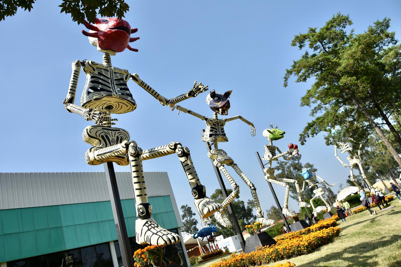Durante el acto inaugural, autoridades locales y habitantes de la comunidad se reunieron para admirar cada una de las calaveras monumentales, en un ambiente de colectividad y armonía. Ana Francis López, secretaria de Cultura capitalina, comentó que el año pasado estuvieron exhibidas en el Zócalo Capitalino y en esta ocasión llegan al oriente de la ciudad.