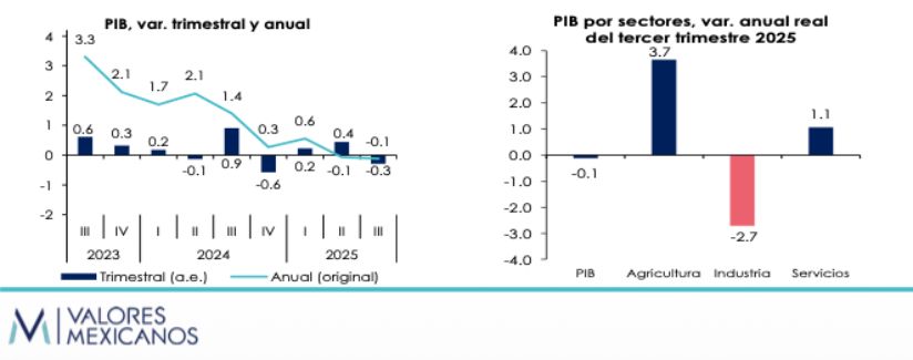 La economía mexicana se contrae en el 3T25: VALMEX
