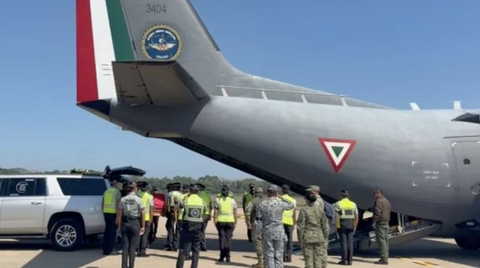 El arribo de los restos ocurrió este miércoles 25 de febrero, bajo un fuerte operativo de seguridad en la zona aeroportuaria. Elementos de la Guardia Nacional formaron una valla para recibir a sus compañeros caídos y rendirles homenaje, mientras los ataúdes son bajados del avión.