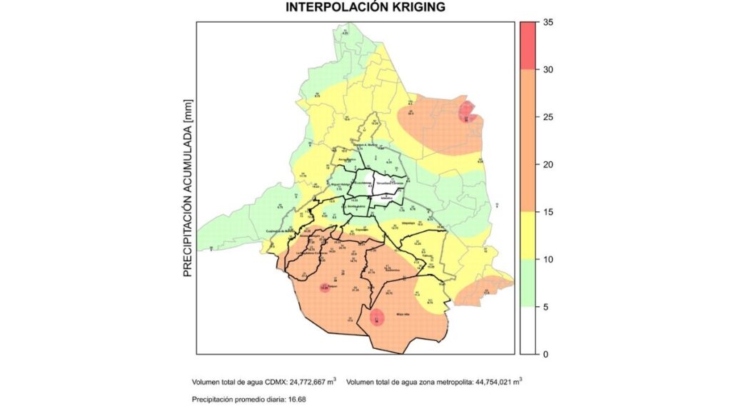 El monitoreo meteorológico reveló cifras impactantes sobre la caída de agua en la región; según los reportes oficiales, el “volumen total de las lluvias registradas en la Ciudad de México es de 24.7 millones de metros cúbicos”. Las estaciones pluviométricas detectaron los niveles más altos en puntos estratégicos como La Grande con 36 mm, el Manantial Tulmiac en Milpa Alta con la misma cifra, y zonas de Tlalpan como Alta Tensión Ajusco, que reportó 33.25 mm de precipitación acumulada.