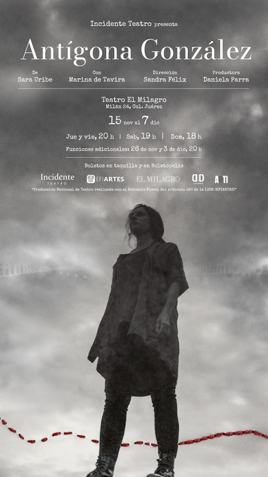 Inspirada en la figura mítica de Antígona, esta versión traslada su lucha al presente mexicano, donde miles de mujeres buscan a sus familiares desaparecidos, enfrentando el silencio con resistencia y esperanza. Desde una mirada poética y humana, la pieza invita al espectador a reflexionar sobre la justicia, la memoria y el duelo colectivo, convirtiendo al teatro en un espacio para nombrar lo que no debe olvidarse.