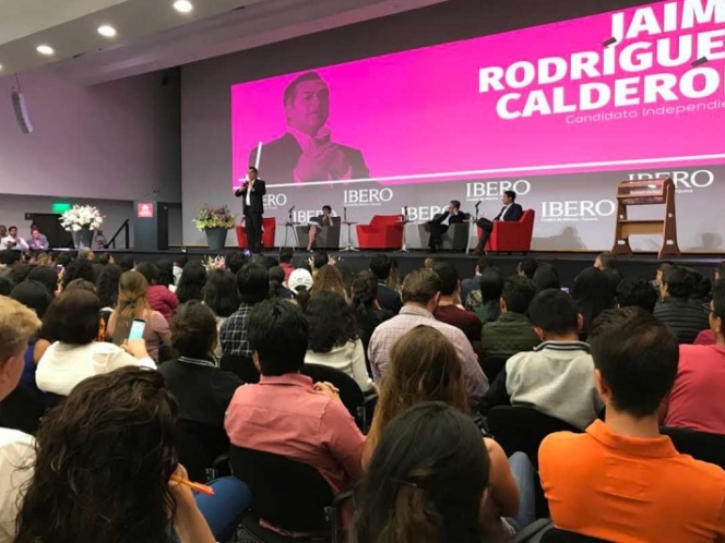 CIUDAD DE MÉXICO, 7 de junio (AlMomentoMX).— El candidato independiente, Jaime Rodríguez, se reunión este jueves con estudiantes de la Universidad Iberoamericana, quienes lo recibieron y despidieron con aplausos, aunque con algunos cuestionamientos sobre su supuesto machismo, misoginia y las acusaciones del Instituto Nacional Electoral (INE) de utilizar firmas falsas y triangular recursos para su campaña.