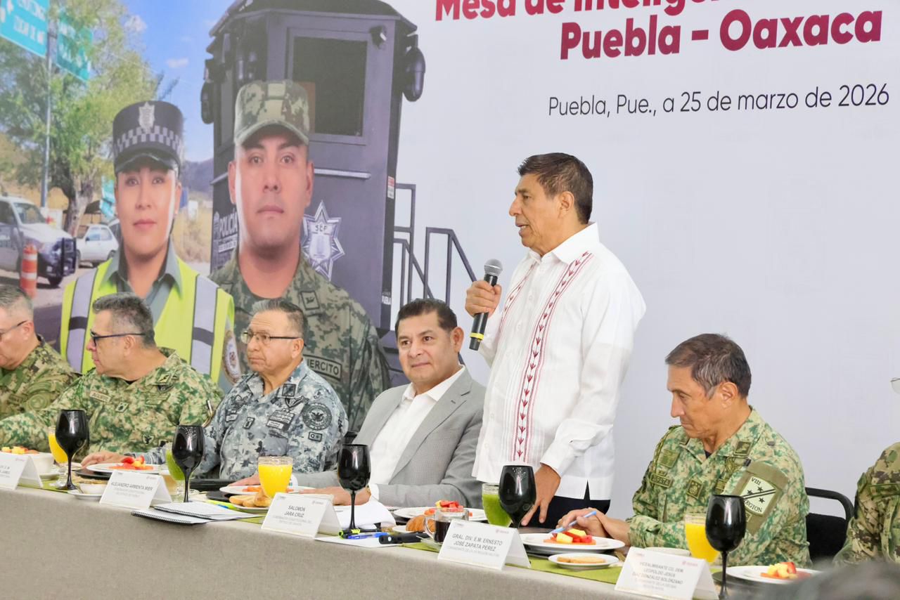 PUEBLA.—  Los gobiernos de Oaxaca y Puebla consolidaron acciones para garantizar la tranquilidad de las familias, con la realización de la Mesa de Inteligencia Interestatal, en concordancia con la Estrategia Nacional de Seguridad que impulsa la presidenta Claudia Sheinbaum.