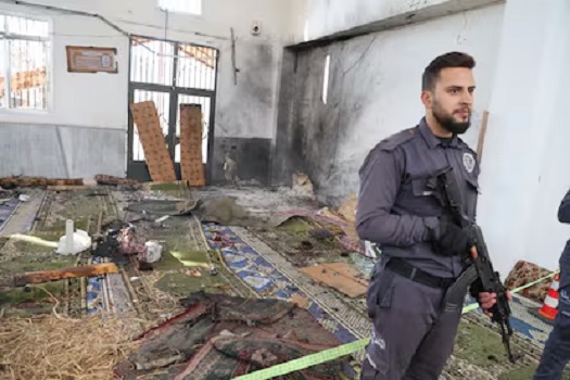 SANA publicó fotos del interior de la mezquita, una de las cuales mostraba un agujero en una pared.