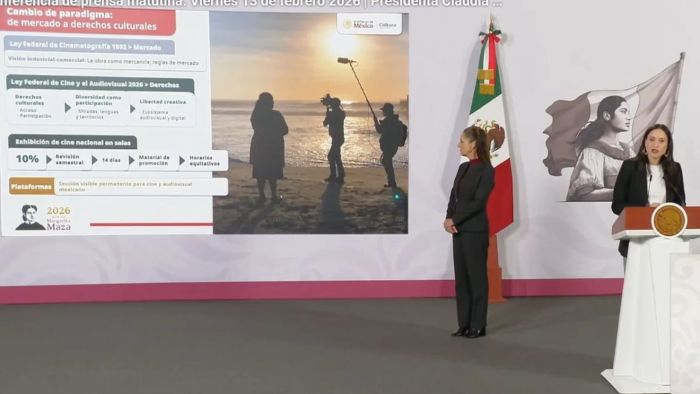 CIUDAD DE MÉXICO.- La presidenta de México, Claudia Sheinbaum, presentó junto con la secretaria de Cultura, Claudia Curiel, la iniciativa a la Ley Federal de Cine y Audiovisual en torno a la reforma a la Ley Federal del Trabajo y la Ley Federal de Derecho de Autor.