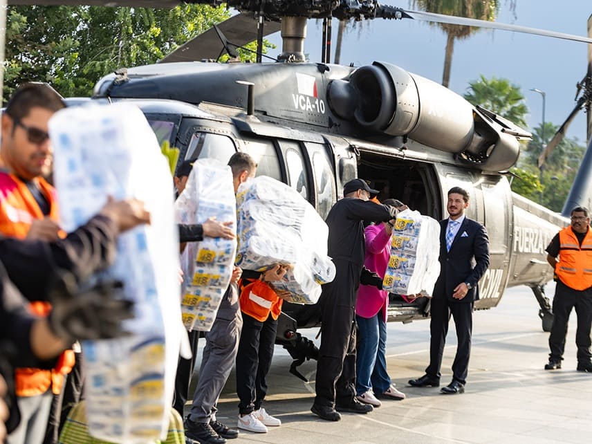 “A la fecha hemos enviado ya 24 toneladas de despensas, agua, medicinas, ropa, artículos de higiene, croquetas, comida enlatada y demás artículos de primera necesidad. Hoy se encuentran en Veracruz 41 elementos de protección civil, 25 de staff de gobierno, cuatro pilotos, cuatro operativos, compañeros del DIF y compañeros de Igualdad e Inclusión. Con estos helicópteros hemos llegado a las zonas más remotas y más afectadas que estaban incomunicadas”, apuntó.