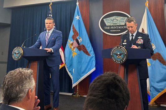 El jefe del Pentágono estuvo acompañado por el oficial militar de más alto rango de Estados Unidos, el general Dan Caine.