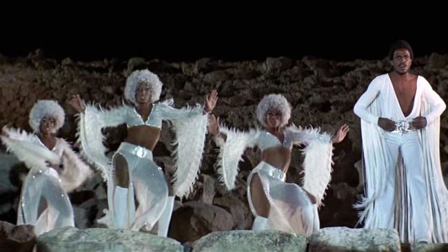 “Jesucristo superstar” tenía la particularidad de que comenzaba con la llegada de todos los actores en un autobús escolar rotulado en árabe, vehículo que transportaba desde los actores hasta la utilería del film. El verdadero protagonista de la cinta, junto con Jesús (interpretado por el rubio cantante y actor Ted Neeley), era Judas, interpretado por el cantante y actor de color Carl Anderson, quien acusaba a los seguidores de Jesús de tener “demasiado cielo en sus mentes”, mientras el argumento iba tejiendo intrigas, celos y pasiones violentas en torno a la figura de Jesucristo.